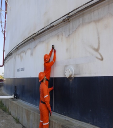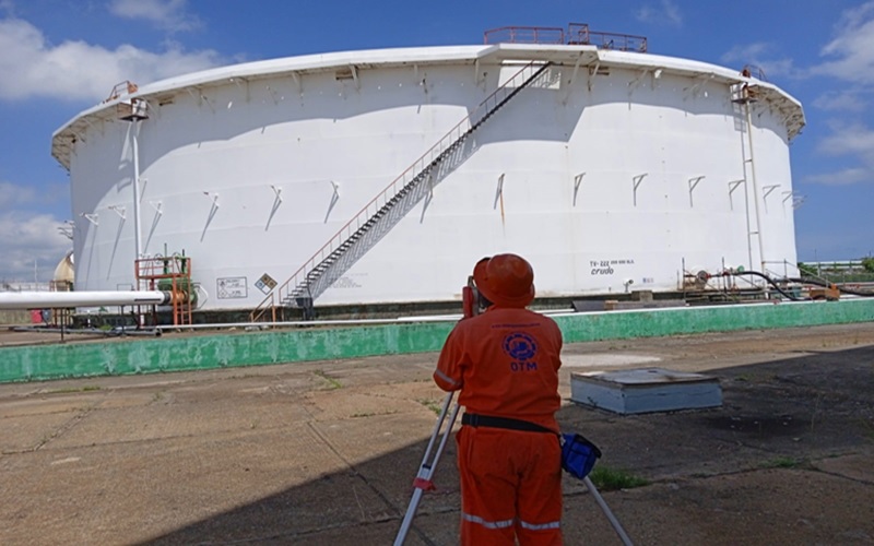 Se mide la circunferencia del tanque con una cinta certificada para posteriormente realizar medidas ópticas con las que te detecta las deformaciones del tanque.